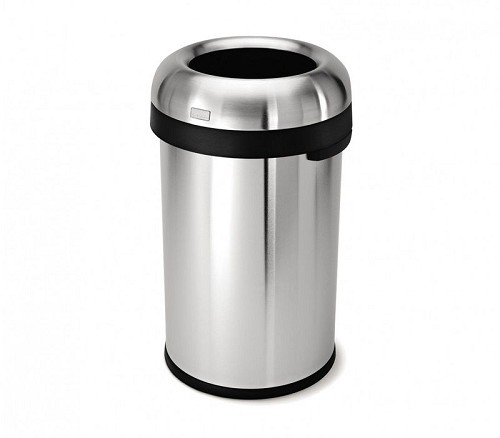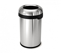 Afvalbak Open Top 80ltr Simplehuman Ronde mat RVS afvalbak met open inworpopening aan de bovenzijde. Grote capaciteit. Voorzien van losse top voor het eenvoudig wisselen van de afvalzak. Kleur : mat RVS Formaat : Ø 451 H 761mm