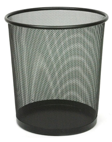 Ronde metalen papiermand, doorsnede boven 29,5 cm, onder 24 cm. 19 liter, Ø 29,5 cm, hoogte 34,5 cm. Zwart.