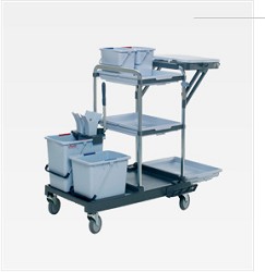 De Origo 300FX is een flexibel model voor reiniging met de emmermethode. Geschikt voor het UltraSpeed microvezel vlakmopsysteem of een strengenmop systeem. De Origo 300 FX heeft een kunststof onderstel met vier 100-mm wielen. Het metalen U-frame heeft 12 in de hoogte verstelbare posities voor de rails. Deze flexibele trolley kan op maat verder ingericht worden.
