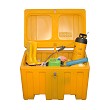Oil spil control box 55 kg per box, box inhoud 650 liter. Inhoud van box: 4 x Olibooms OIL ONLY, 1 Sweep, 12 kussens, 2 x Truckpack zie art.nr EURP00050T, 200 doeken OIL ONLY, 50 doeken universal, 2 paar handschoenen chemisch bestendig, 1 rol afvalzakken.