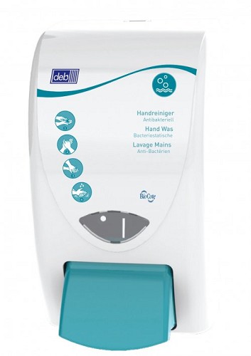 Dispensers - Handmatige dispensers uitgerust met Biocote® (antibacteriële werking door zilver-ion technologie). 1 liter dispensers t.b.v. antibac handzepen.