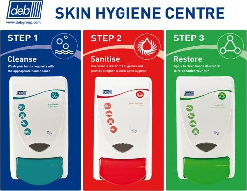 Deb Skin Protection Centre - Speciaal ontwikkeld voor de levensmiddelenindustrie. 3 stappen: Reinigen/Desinfecteren/Verzorgen.