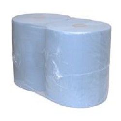 Industriepapier blauw cellulose verlijmd, verpakt per 2 rollen. 190 meter x 37 cm, 500 vels, 3 laags.