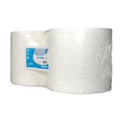 Dit product is beloont met het Europese ECO label. Industrierol wit ECO Select extra, verpakt per 2 rollen. 350 meter per rol, 24 cm breed, 1000 vels, 2 laags.