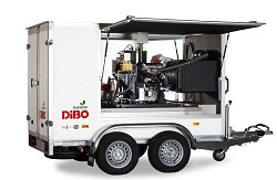 Standaard uitgerust met: Ingebouwd autonoom vacuümsysteem, aangedreven door dieselmotor Milieuvriendelijke DiBO GreenBoiler branderketel met onafhankelijke motor en brandstofklep Industriële dieselmotor met dieseltank van 104l, vulbaar vanaf de buitenzijde van de trailer Bedrijfspanning van 12V DC Manometer Urenteller Bediening d.m.v. DiBO Controller: - Start/contact-/stop - Noodstop - Boiler aan/uit - Vacuümsysteem aan/uit - Traploze druk-/debiet- en temperatuurregeling - Brandstofmeter - Motorcontrolesysteem met diverse verklikkerlichten - Display: werkdruk, onderdruk vacuümpomp, watertemperatuur, snelheid dieselmotor in %, niveau in beide watertanken.