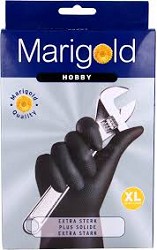 Marigold Black handoenen Xl -Beschermt bij allerlei klussen -Goede grip door het ruitprofiel -Transpiratieremmende katoenvlokvoering vergemakkelijkt aan - en uitdoen -Sterk rolrand voorkomt inscheuren en afrollen -Hoog draagcomfort door de goede pasvorm Prijs per pak á 1 paar.
