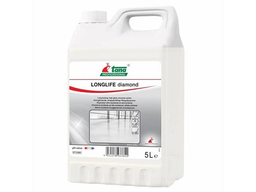 LONGLIFE diamond is een hoogglanzende en slijtage bestendige verzorgingsdispersie die de vloer langdurig beschermt.